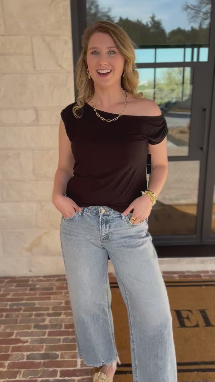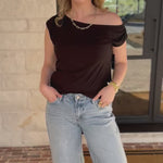 Sleek, flattering, and effortlessly sexy, the Black Off the Shoulder Top is the kind of statement piece that instantly pulls a look together. Designed with a soft and stretchy material and a date night approved off the shoulder look!