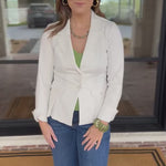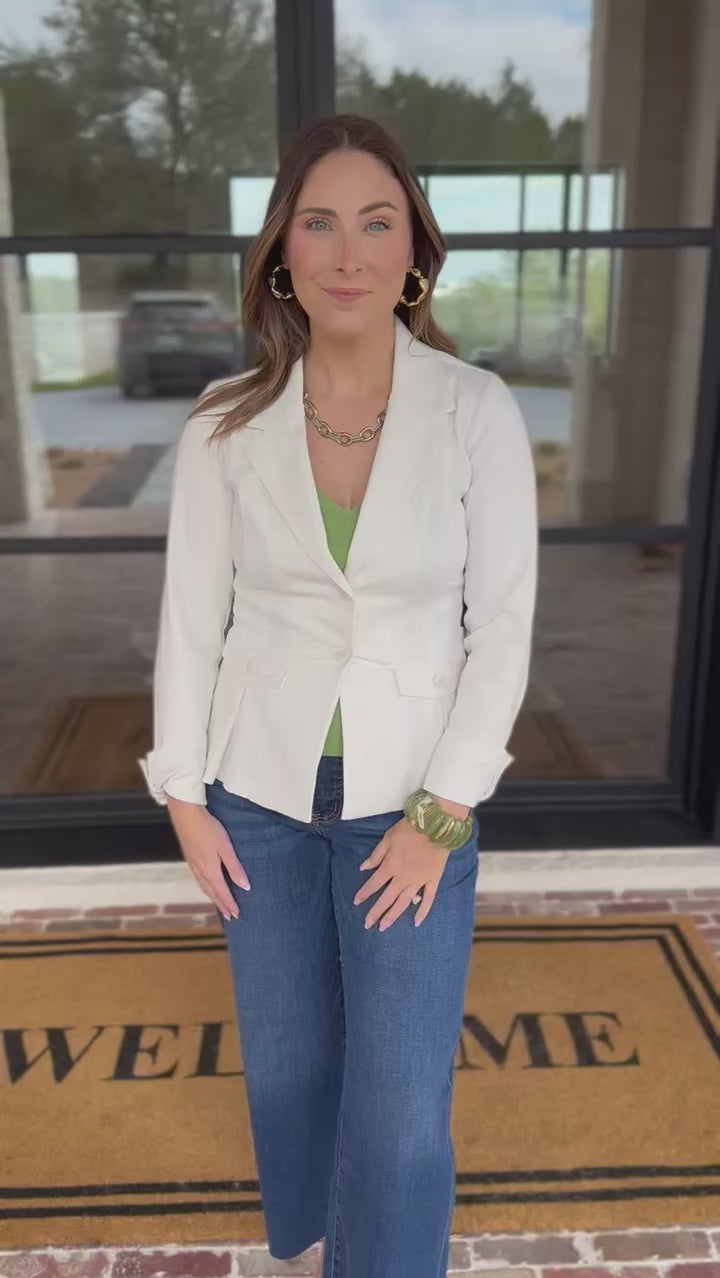 Our Ivory Denim Peplum Blazer is your new spring time layering hero. Crafted in high quality material and a flattering fit, it instantly elevates everything from denim to dresses. Toss it on and look put-together without even trying!