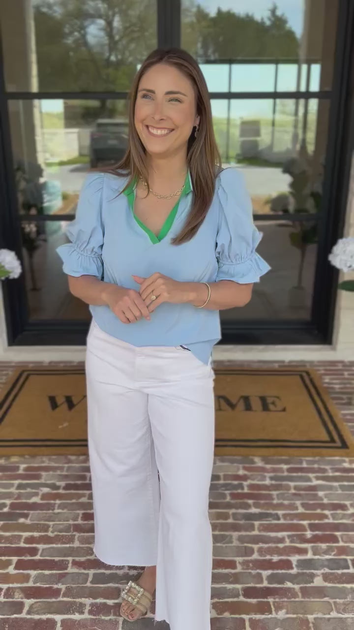 Elevate your everyday wardrobe with our Jessica Blouse in Light Blue. Classic silhouette meets boldness through mix of colors that add just the right amount of charm without compromising sophistication. A wardrobe essential that effortlessly transitions from season to season!