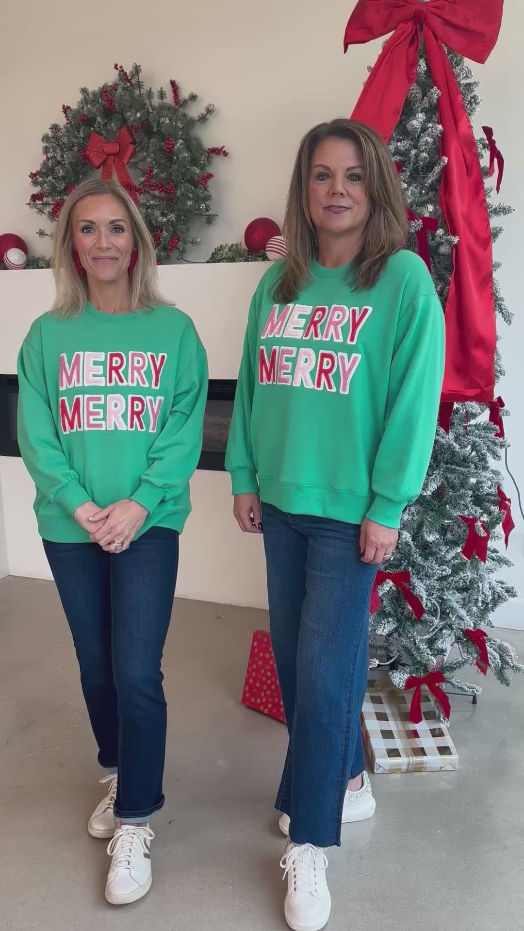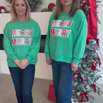 Spread some cheer with our Sarah Merry Merry Sweatshirt! This festive top will bring so much joy to your holiday season. Perfect for cozying up in comfy pants and a cup of coco during Christmas or wearing with jackets and leggings for running errands!