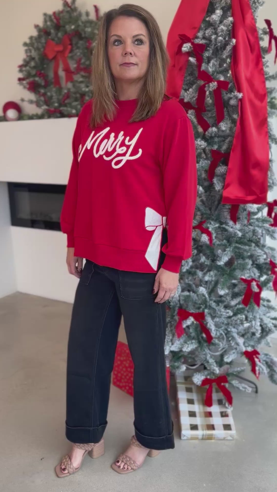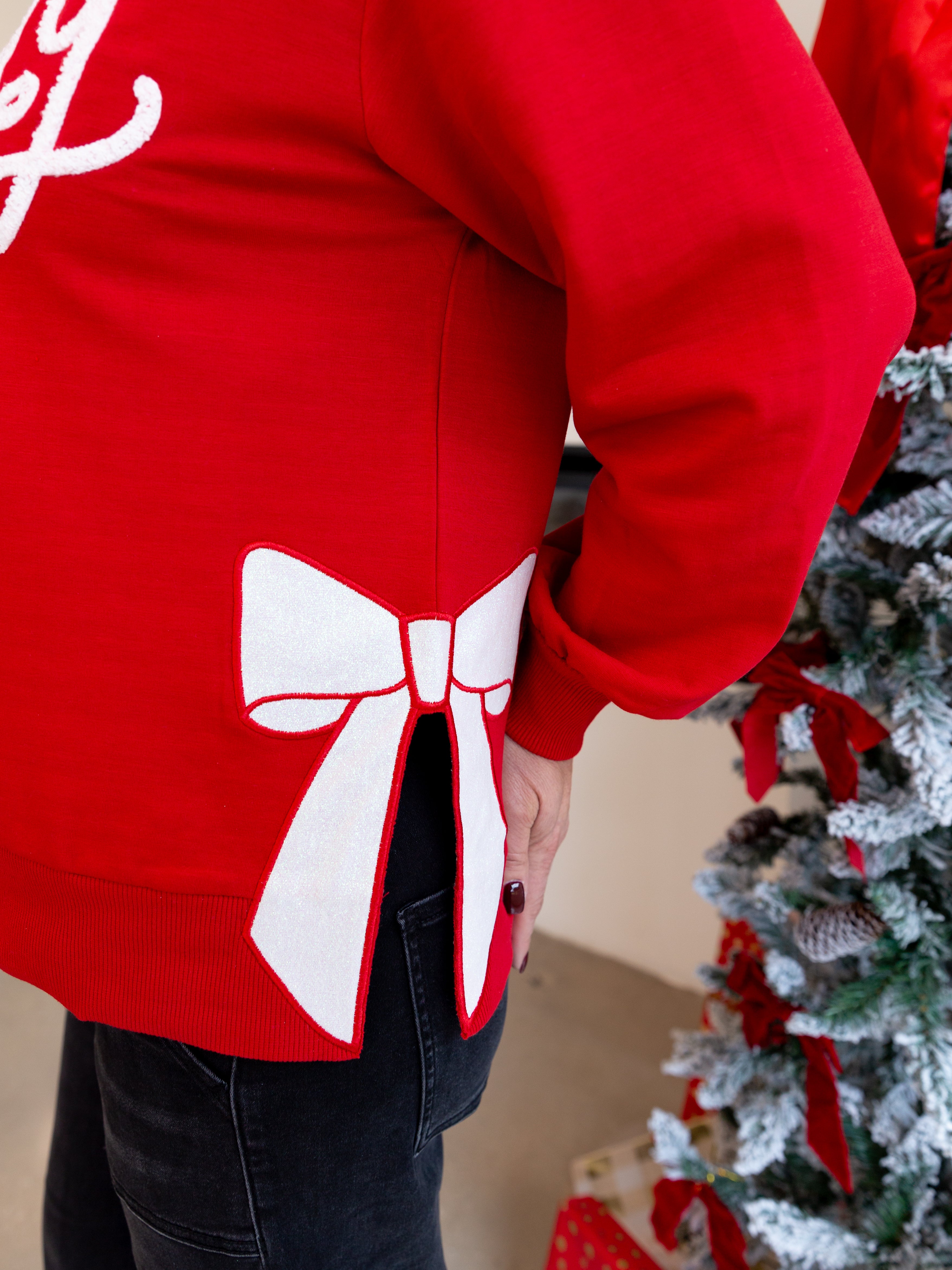 Stay cozy and stylish this holiday season with our Lakelyn Merry Bow Sweater! Perfect for Christmas parties dressed up or for lounging at home with family in comfy leggings!