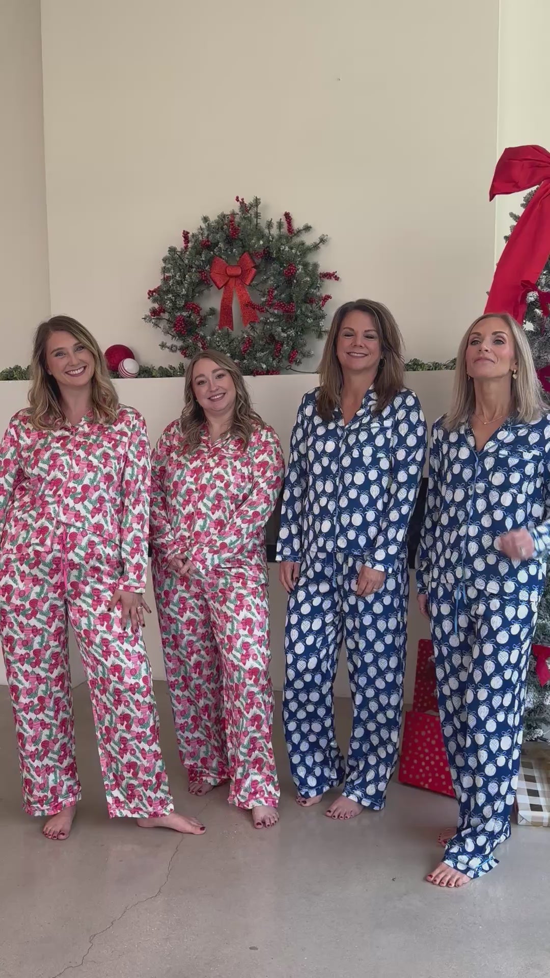 The Charlotte Trim The Tree PJ Set fits true to size/slightly oversized. Our models are wearing their true size (see video for each models sizes). We suggest everyone staying true to size for that cozy fit but If you are in between sizes, you could size down!