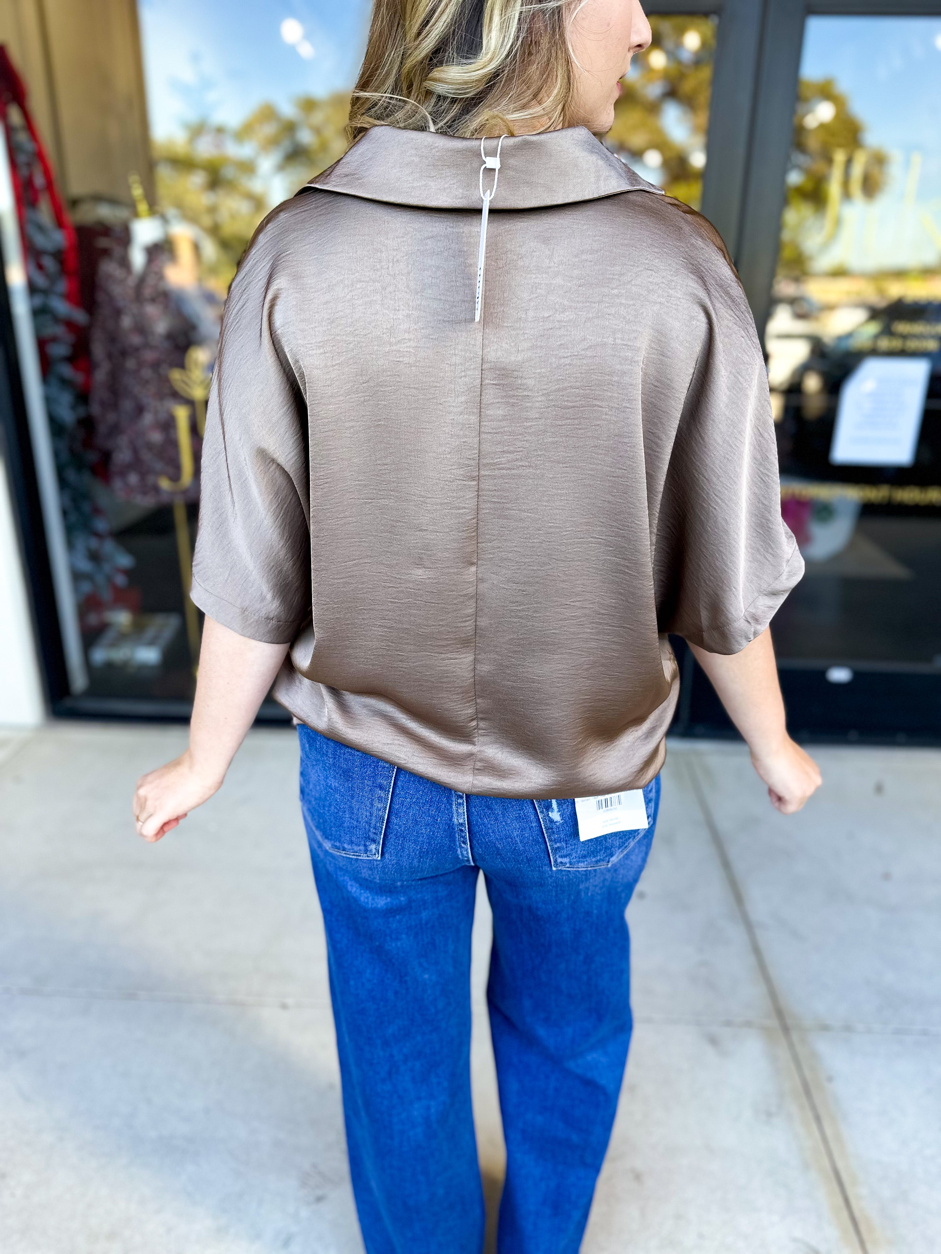 Pink Friday Doorbuster - Classic Satin Blouse - Mocha - ONLINE-PINK FRIDAY DOORBUSTERS-GLAM-July & June Women's Fashion Boutique Located in San Antonio, Texas