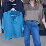 Elevate your everyday wardrobe with this versatile satin blouse. The lightweight fabric is perfect to layer with your fav jackets or cardigans! This essential piece transitions seamlessly from day to night, making it the closet staple you've been searching for!