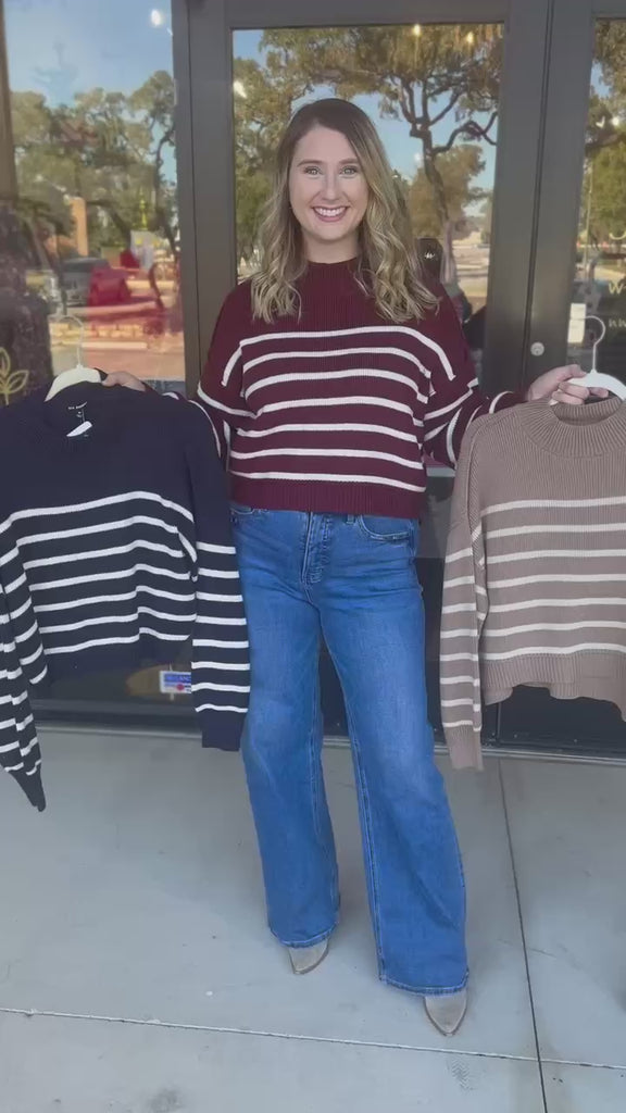 Embrace cozy warmth with the Mock Neck Sweater Top in 3 classic colors. Its soft fabric makes it ideal for comfort while still looking cute! A winter casual must have!