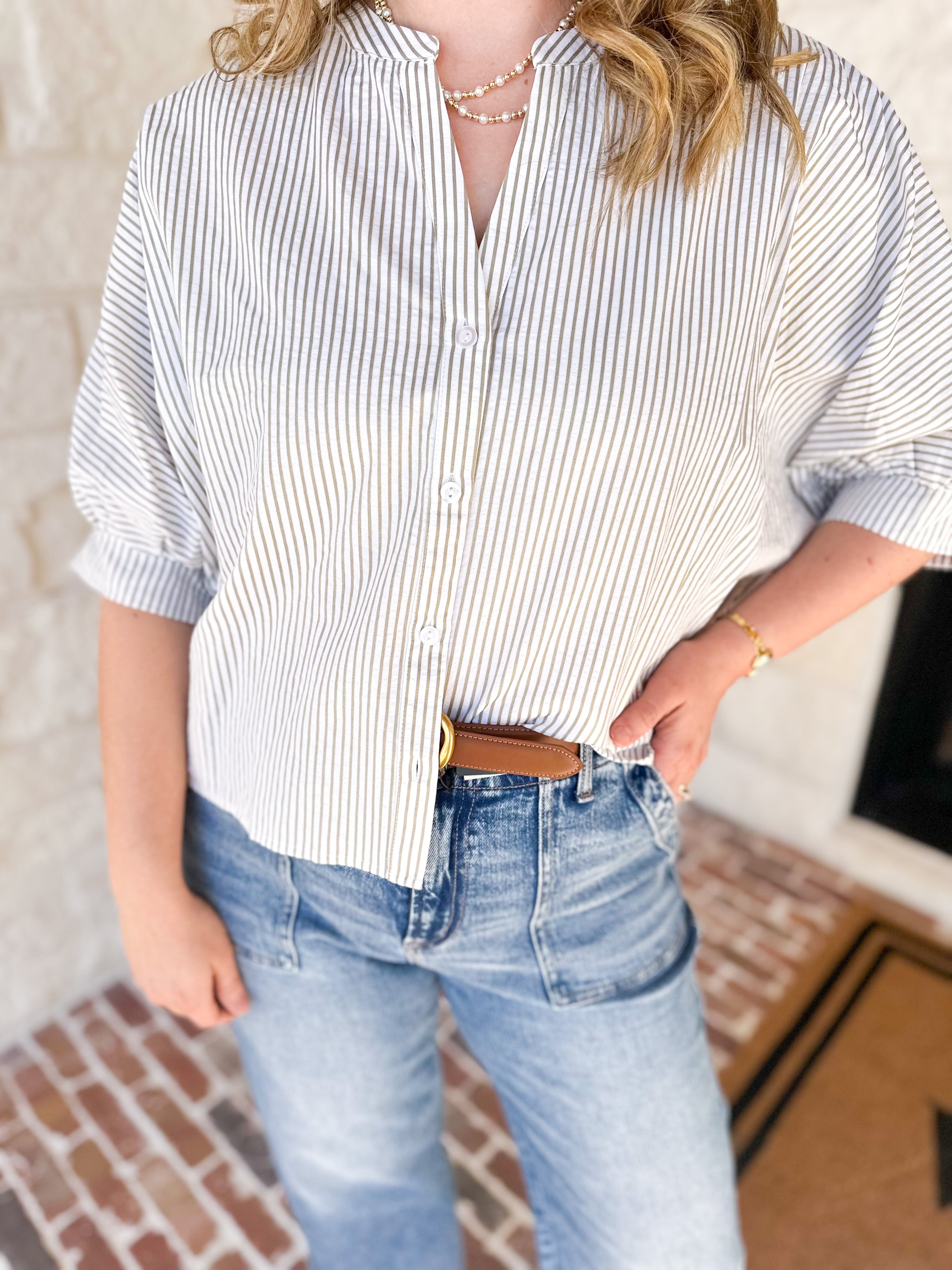 Introducing your new favorite everyday blouse – The Stripe Dolman Blouse! Lightweight and easy to wear, this versatile blouse is the perfect choice for your everyday wardrobe. Say goodbye to the hassle of picking out outfits each day!