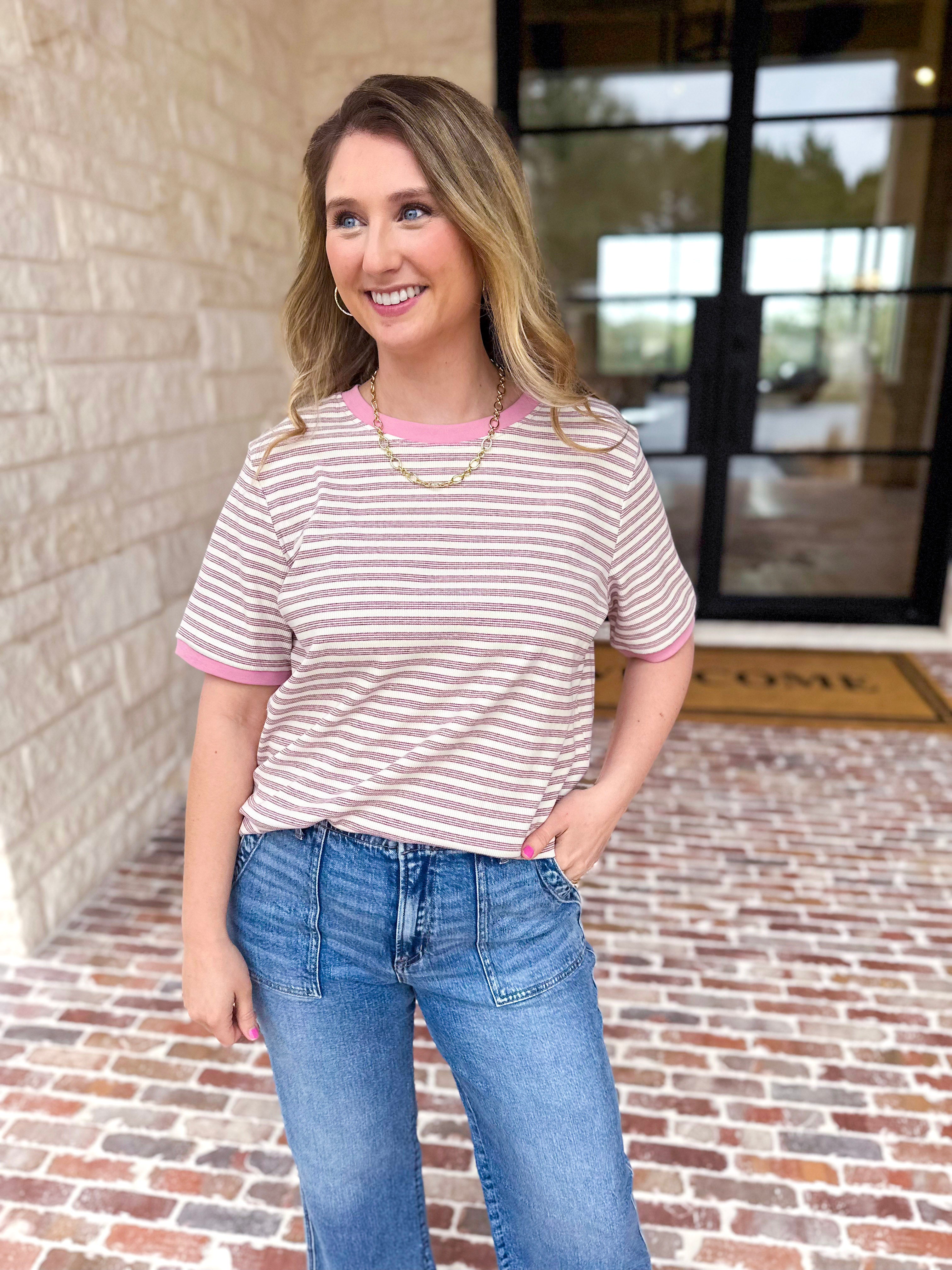 Casual Hangout Striped Tee - Pink