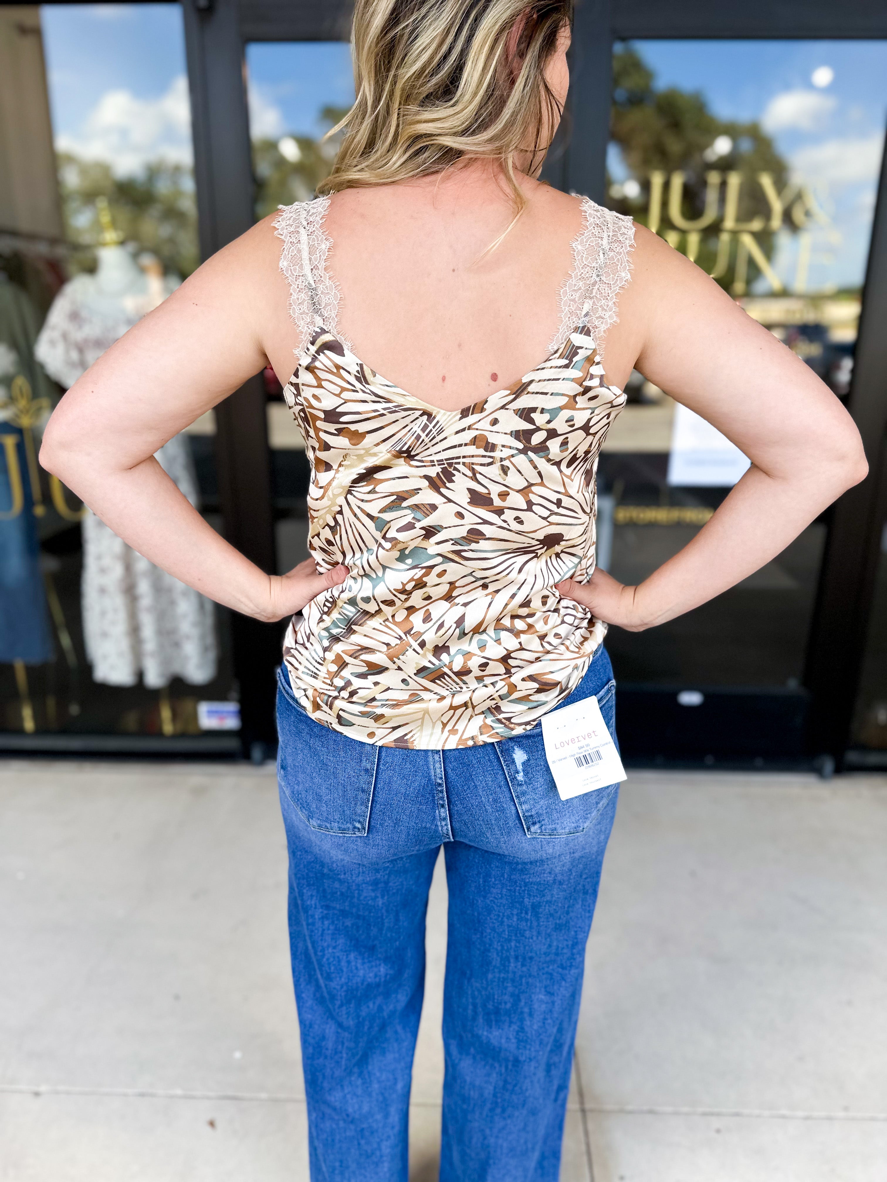 The Autumn Abstract Lace Cami offers a lightweight, easy-to-layer design perfect for dressing up or down with minimal effort. Its versatile style allows you to transition seamlessly from casual to a date night top, making it an essential piece for your wardrobe!