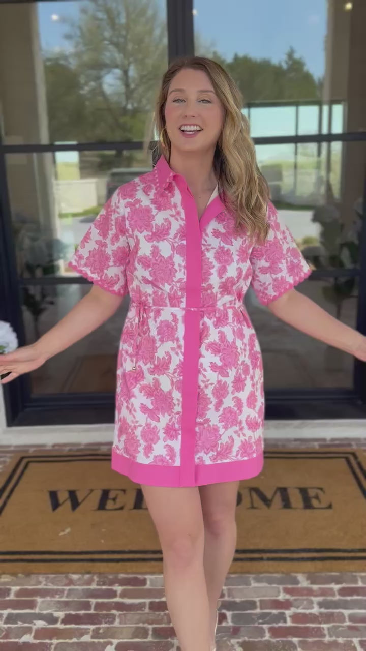 Create the perfect spring look with the Audrey Mini Dress! Featuring feminine florals and bold pink colors, this dress is the ultimate spring mini dress. Perfect for any special events, this dress will have you looking and feeling your best!