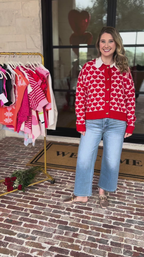 Soft, sweet, and full of charm — the I Heart You Cardigan is the ultimate statement layer. Featuring an allover heart print with standout heart-shaped buttons, this cozy knit adds a playful pop to any outfit while keeping things comfy and cute. It’s the kind of cardigan that instantly boosts your mood the moment you put it on.