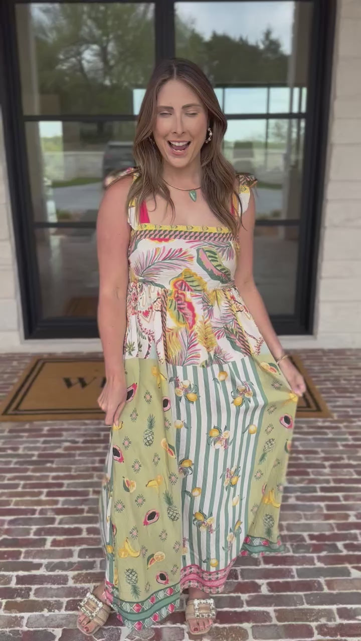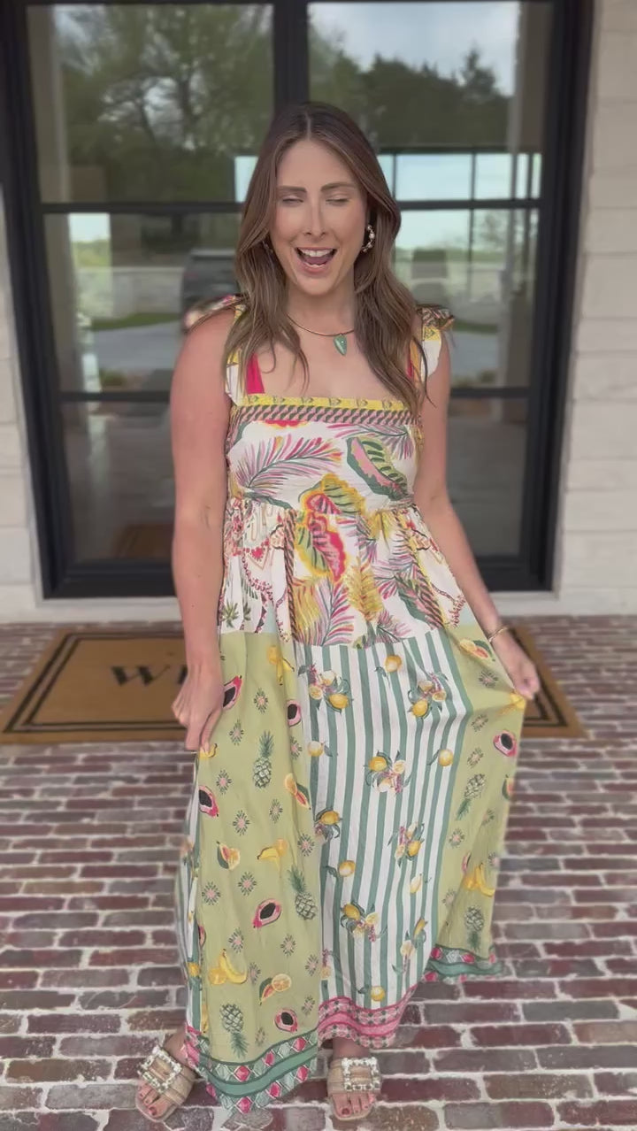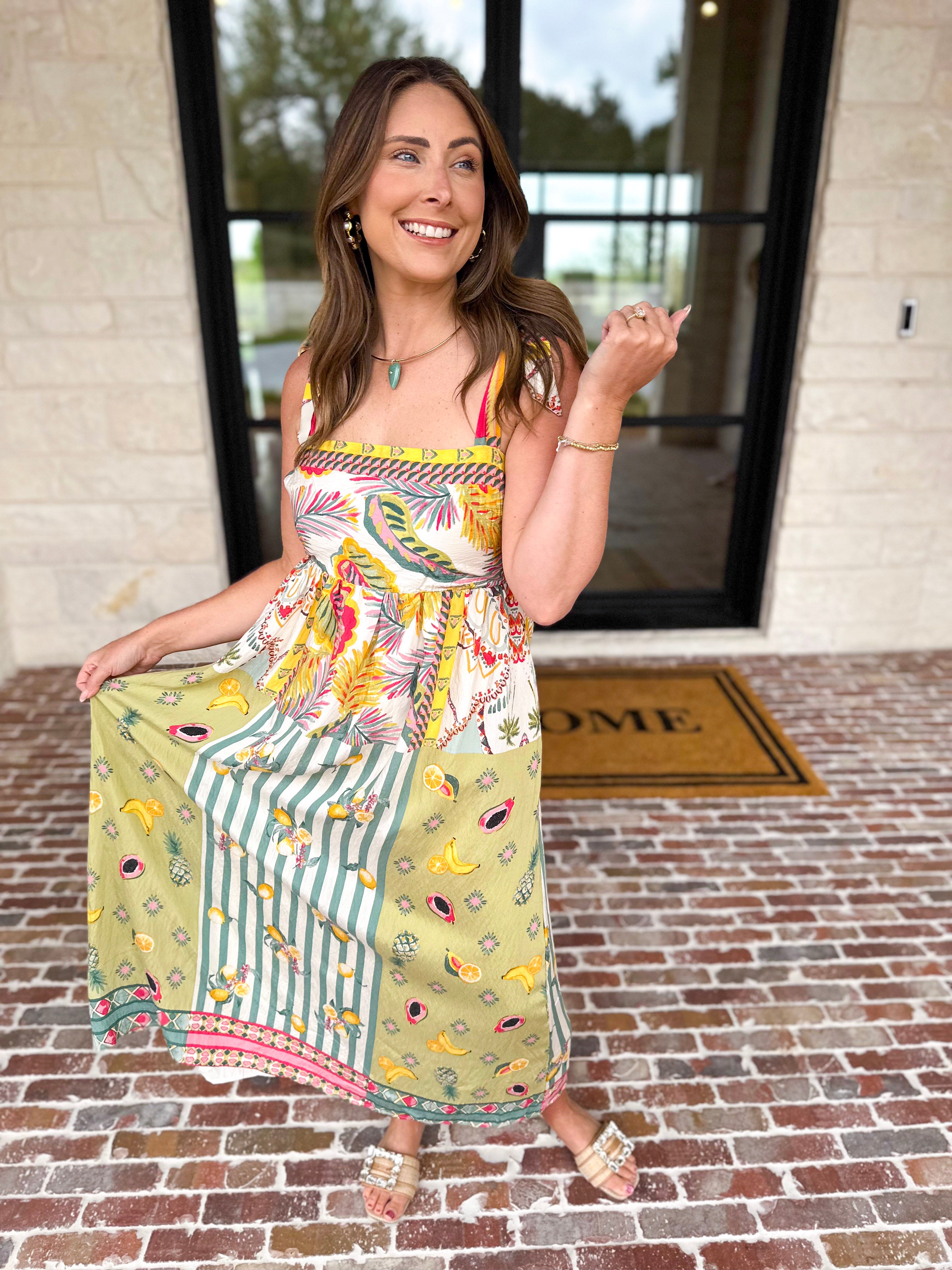 Fresh, vibrant and effortlessly eye-catching, the Paradise Midi Dress is a standout for your next vacation. The bold mix of colors and prints makes it the perfect statement for spring and summer occasions. Its breezy silhouette adds beautiful movement while keeping the fit easy and flattering!