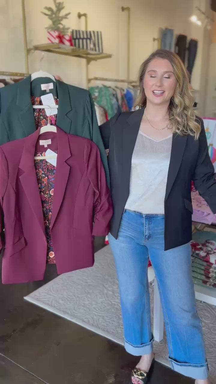 The Blair Blazer in 3 winter colors is a timeless closet staple perfect for transitioning into fall. Its classic cut offers effortless style and versatility, making it easy to layer over your favorite outfits!