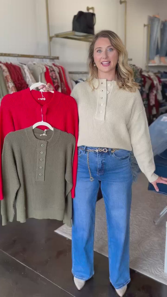 The Everyday Henley Sweater in 3 different colors is your go-to piece for casual comfort and easy style. Its soft fabric and classic henley design make it perfect for layering or wearing on its own. Effortlessly versatile, it lets you create looks that fit your day!