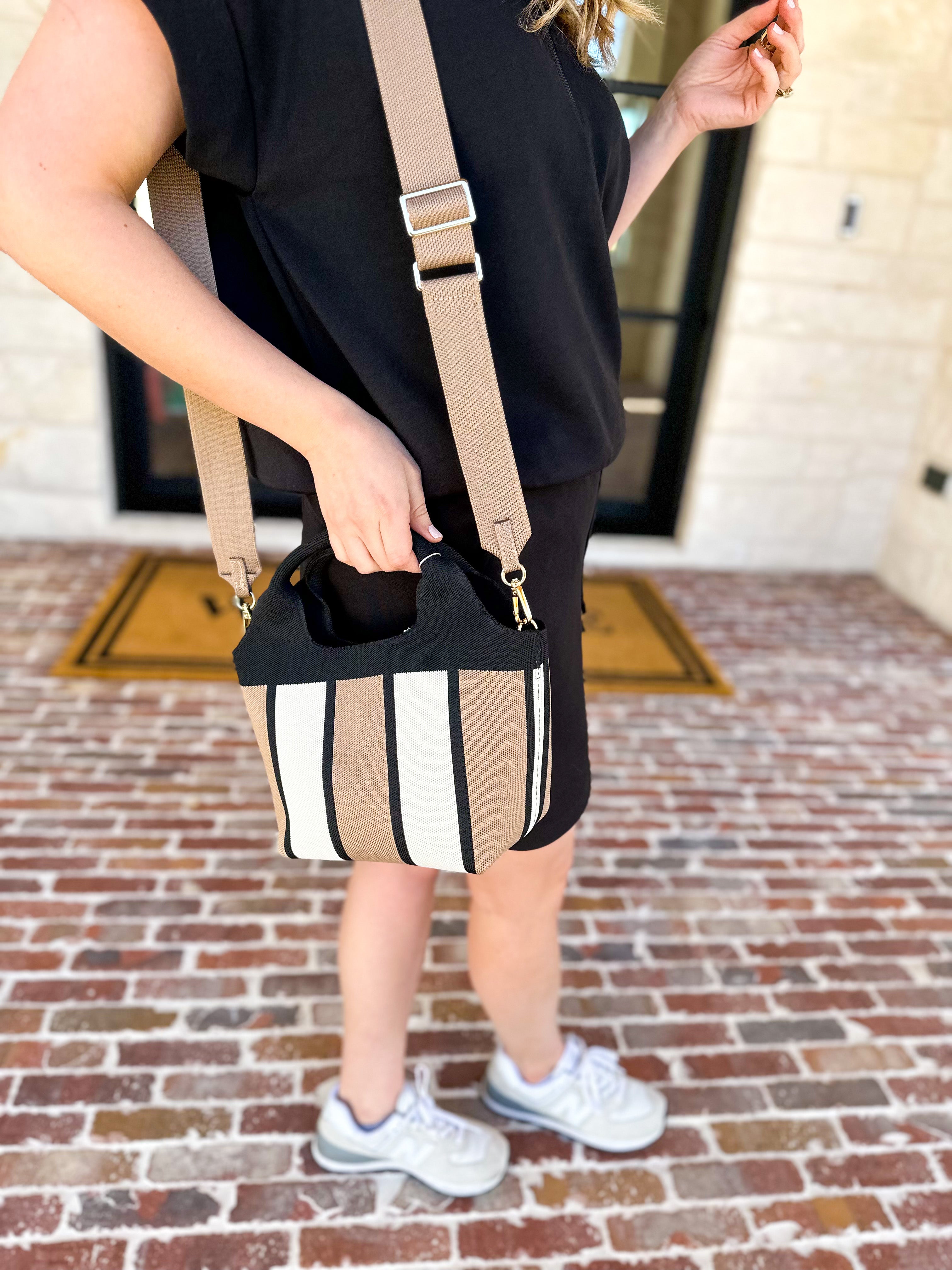 L 14.5" x W 4.25" x H 7.75"; hnd 4"; double handles; top zip closure; 1 inner slip pocket. Comes with an extra bag inside