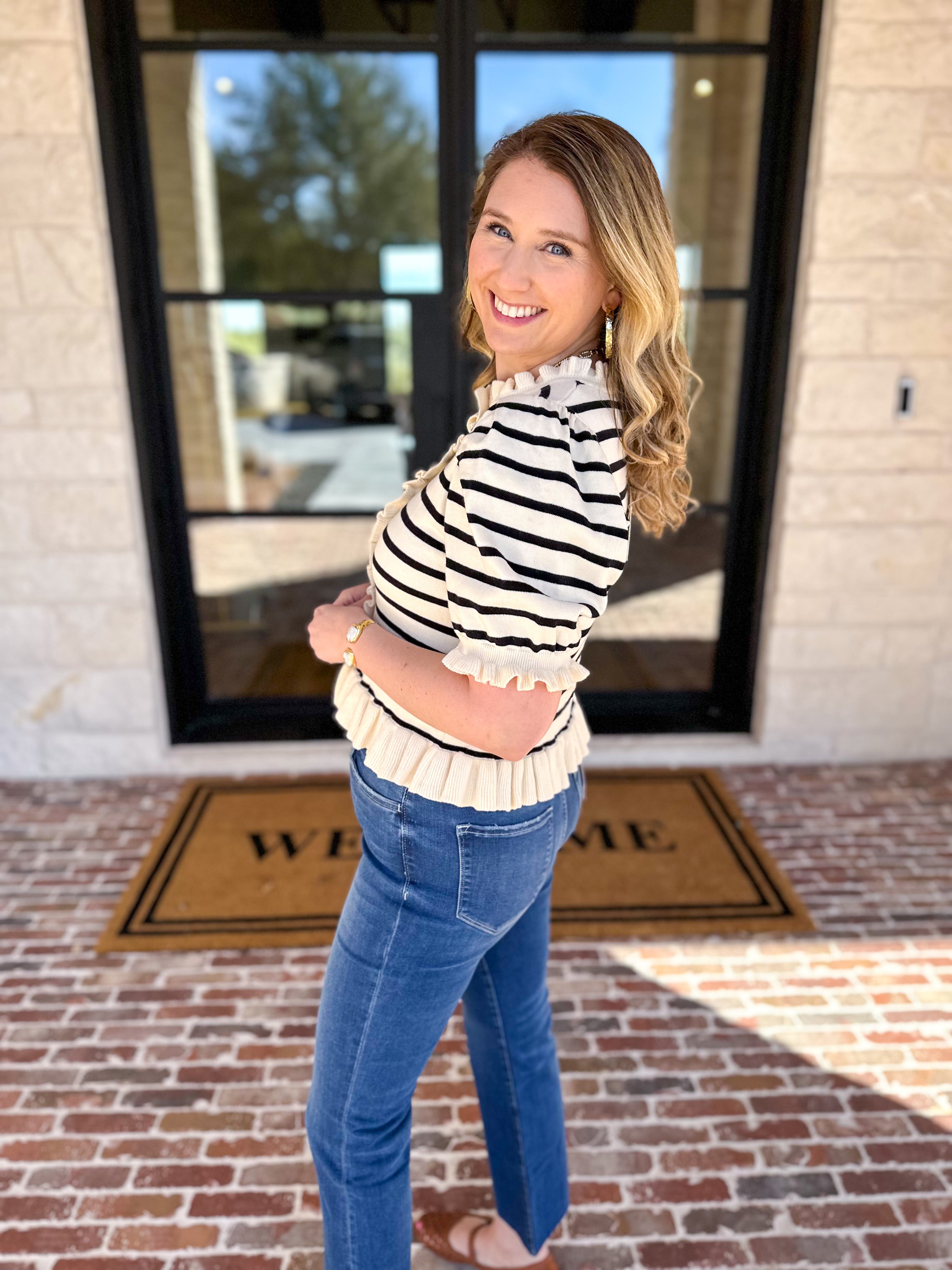 Soft, classic, and effortlessly chic — the Simply Sweet Cardigan is a piece you’ll wear on repeat. Featuring a soft ribbed knit with a flattering fit and ruffle details, this sweater top strikes the perfect balance between polished and easygoing. Perfect for everyday wear or for a fun date night!