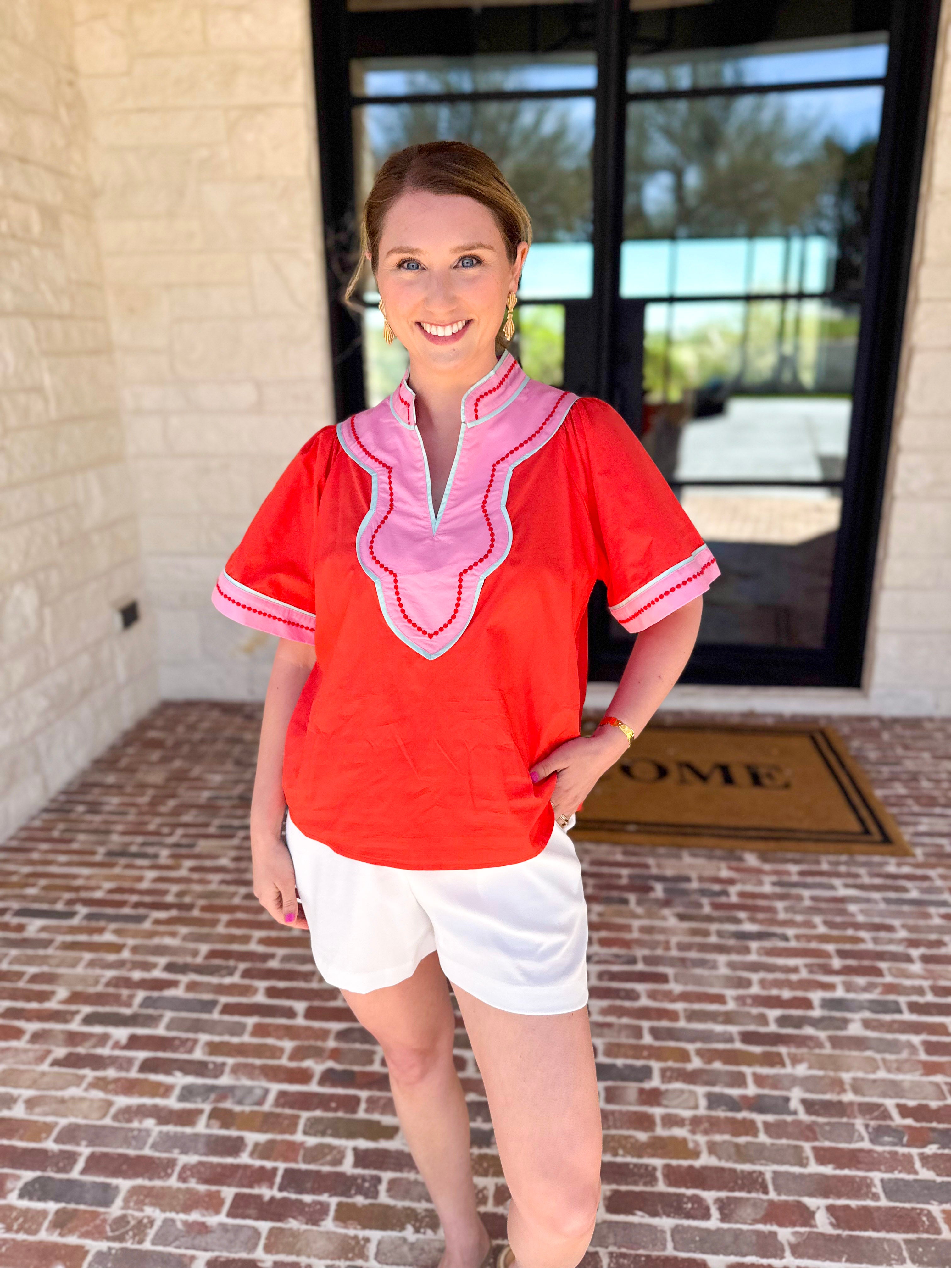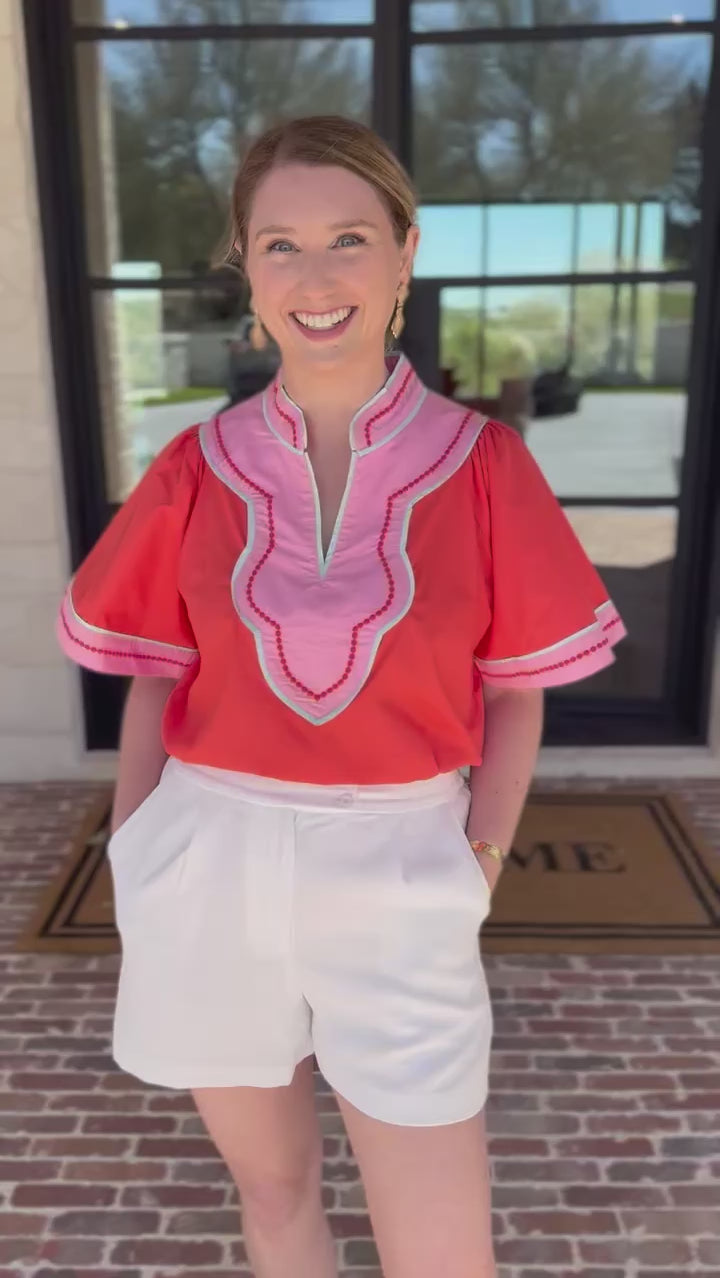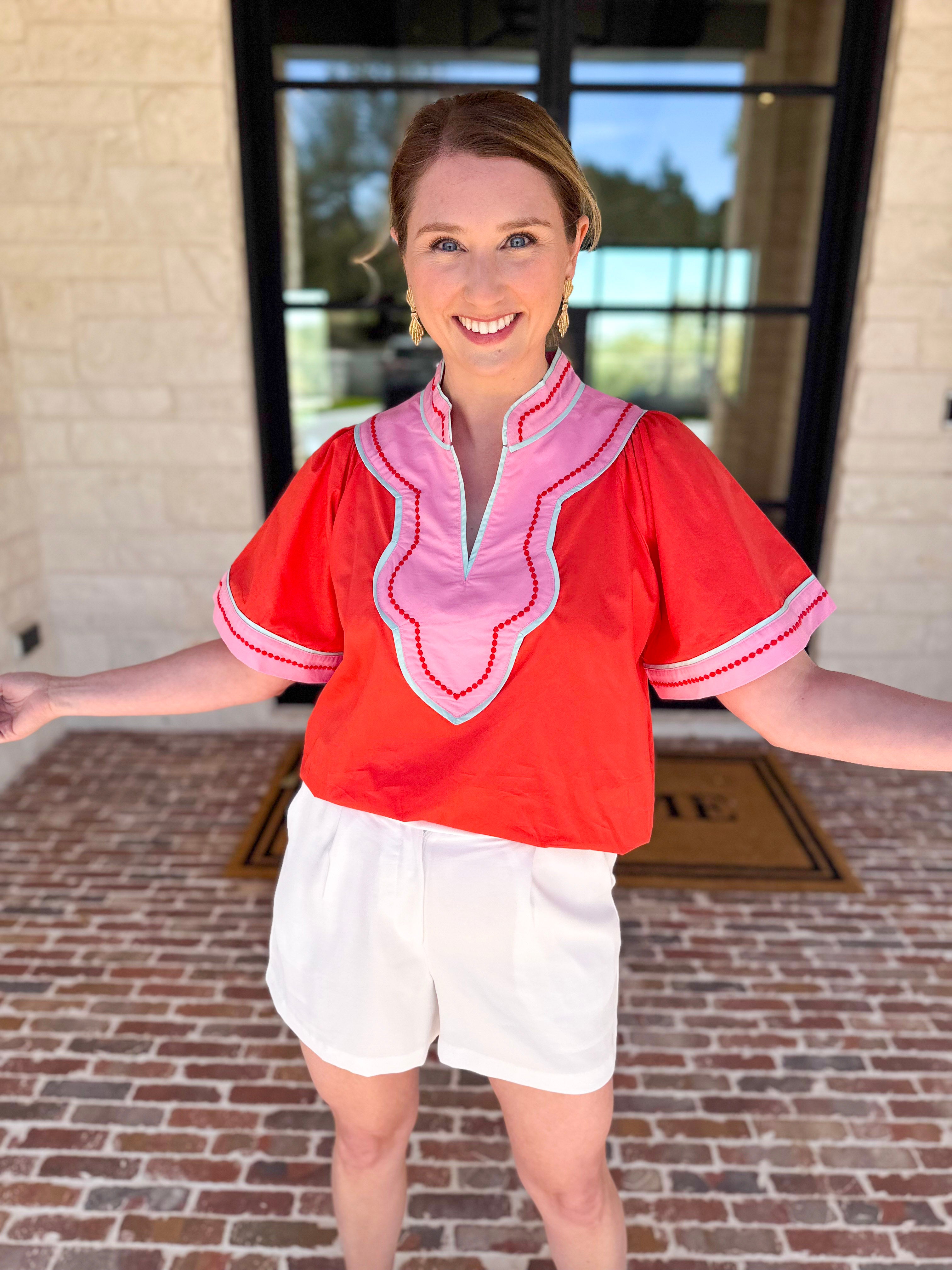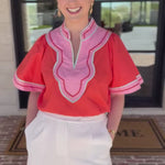 Bold, vibrant, and effortless, the Sunburst & Pink Blouse is a standout for the season. The vibrant mix of colors makes the perfect statement for spring and summer occasions. Its feminine silhouette is essential for Fiesta, vacations or lunch dates with friends!