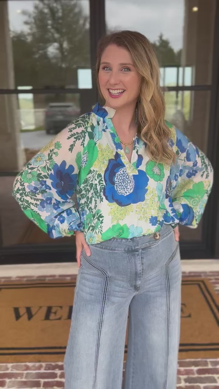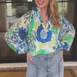 Introducing your new favorite spring and summer blouse – The Blue & Green Florals Blouse! Lightweight and easy to wear, this versatile blouse is the perfect choice for your everyday wardrobe. From its bold and colorful print to its effortless fit, you will always reach for it!